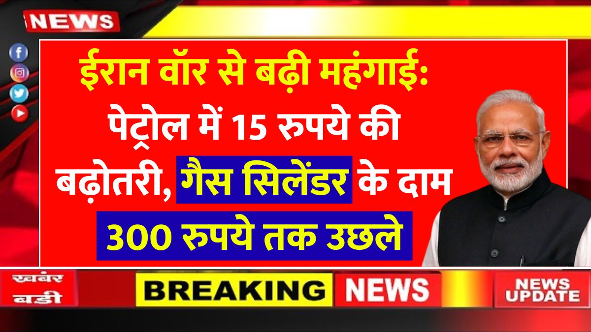 ईरान वॉर से बढ़ी महंगाई: पेट्रोल में 15 रुपये की बढ़ोतरी, गैस सिलेंडर के दाम 300 रुपये तक उछले | petrol diesel lpg gas